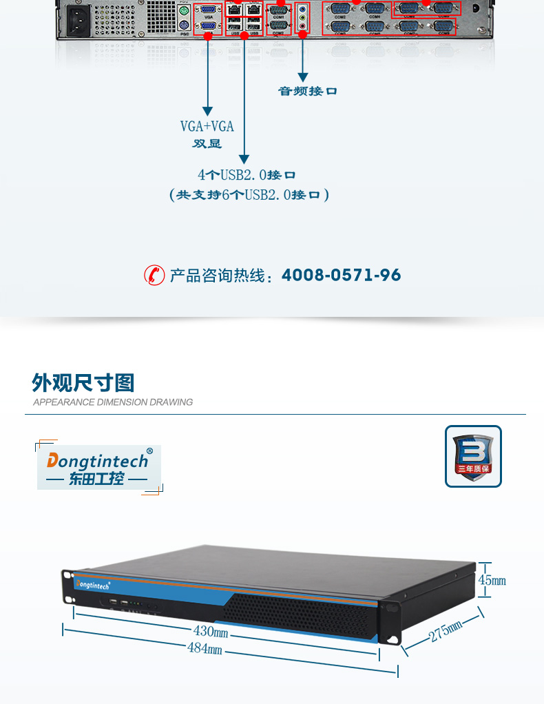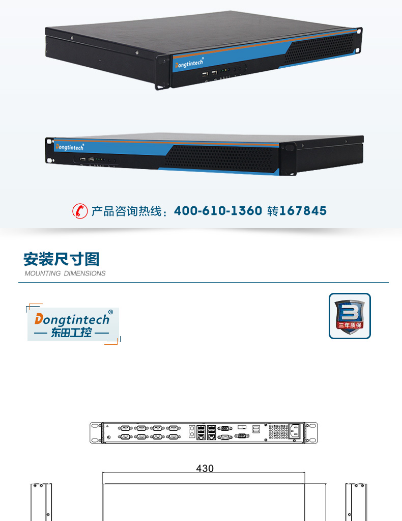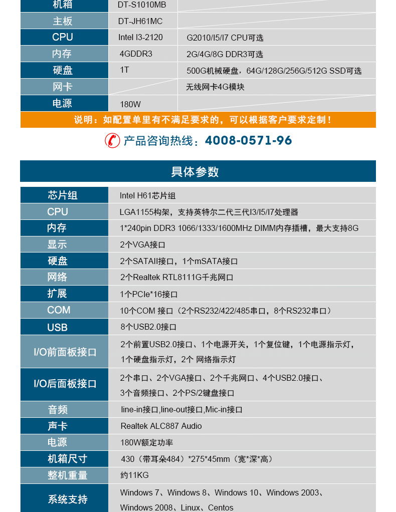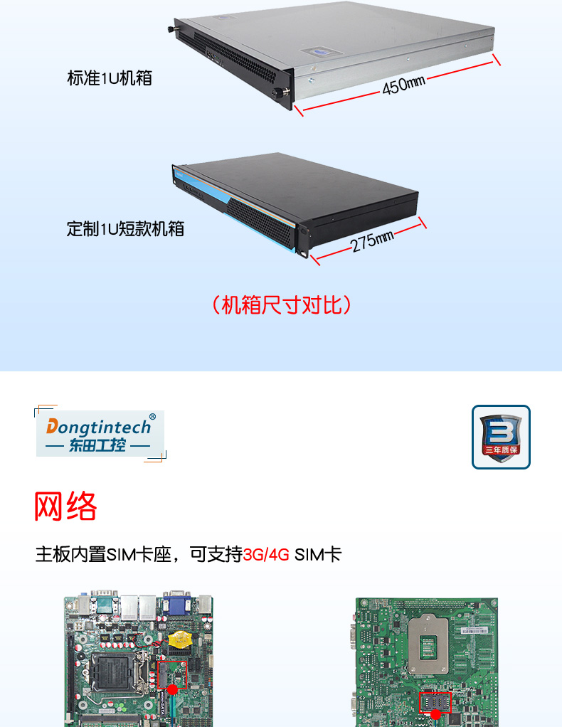 酷睿3代1U短款機架式工控機 雙網雙顯xp工業服務器 DT-S1010MB-JH61MC