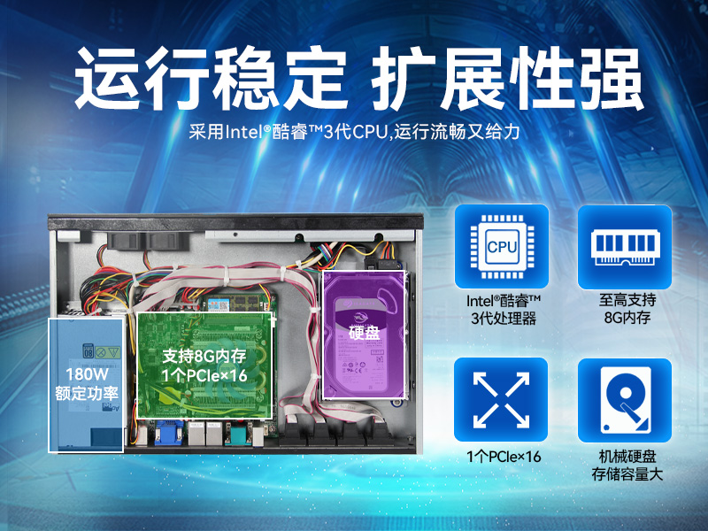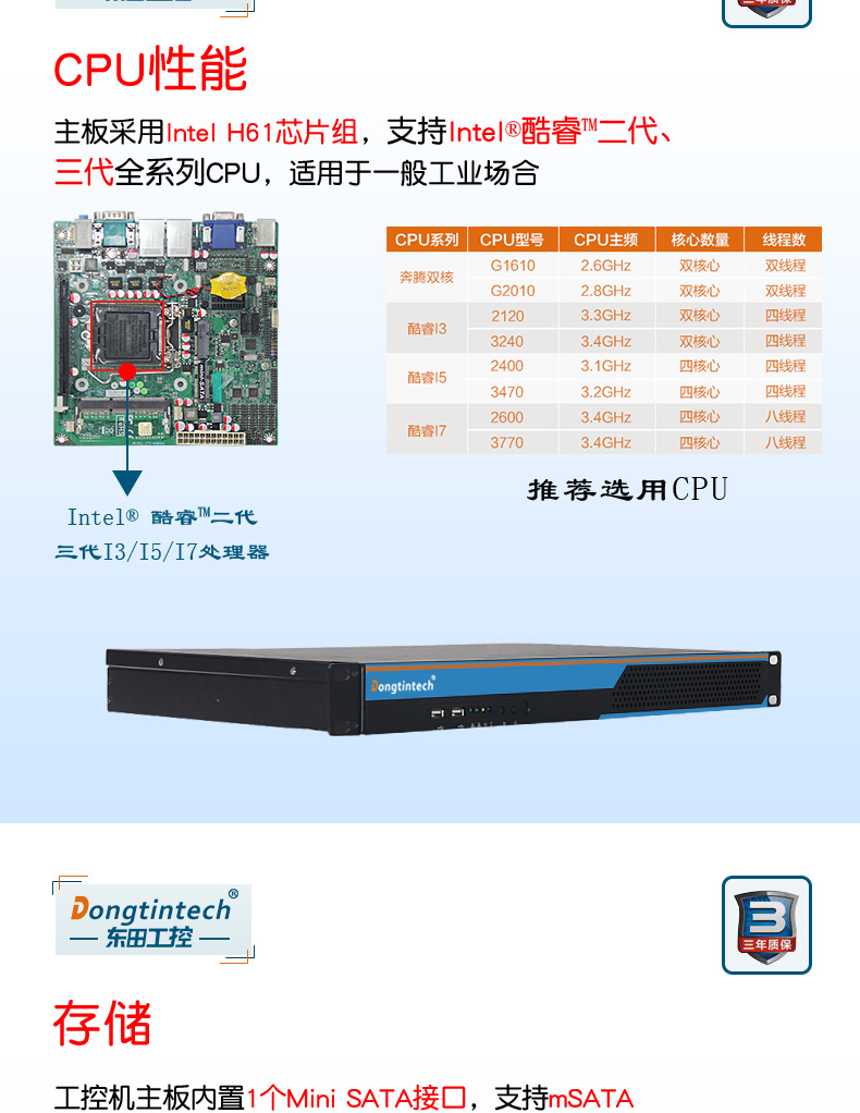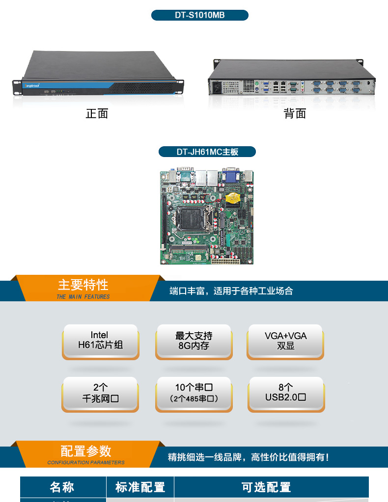 • 酷睿3代1U短款機架式工控機 雙網雙顯xp工業服務器 DT-S1010MB-JH61MC