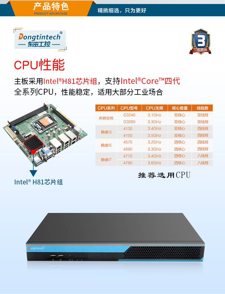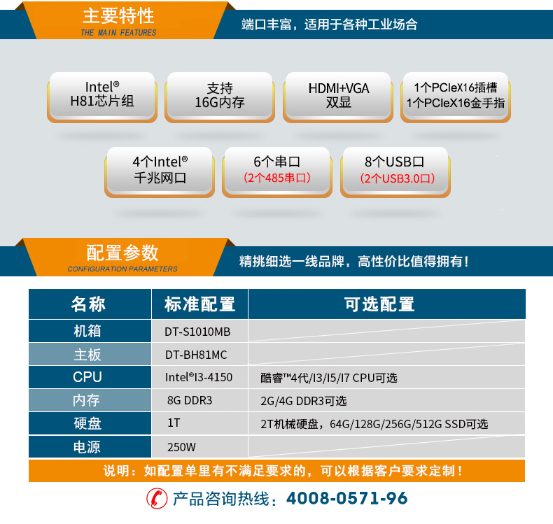 酷睿4代1u短款工控機 4網口工業自動化服務器 DT-S1010MB-BH81MC