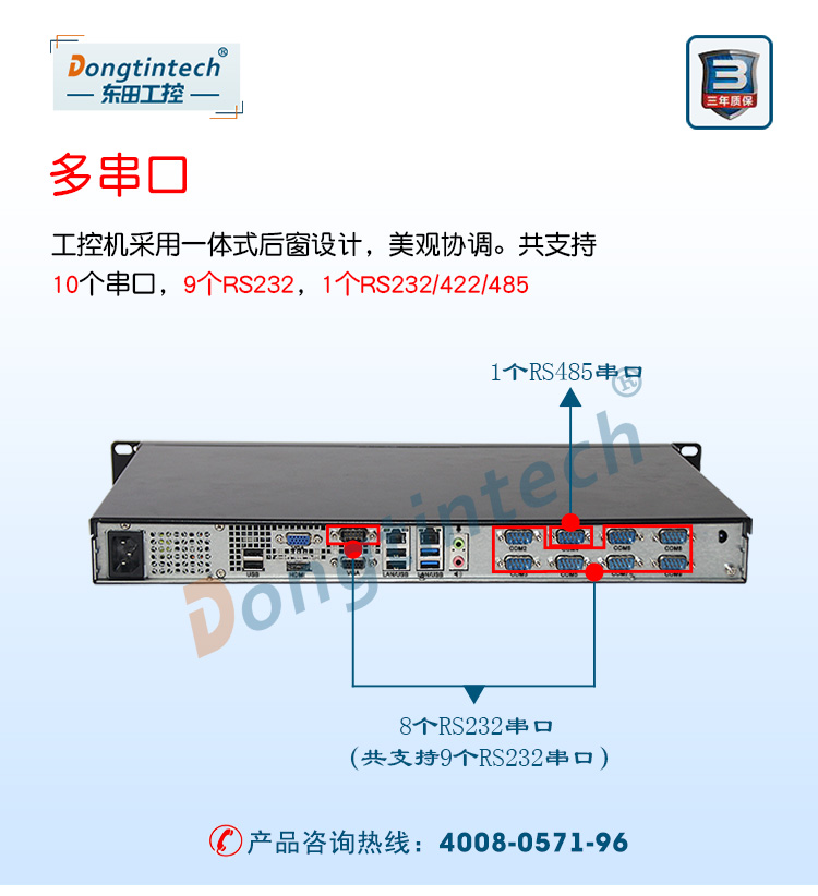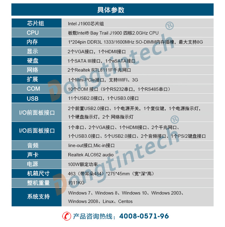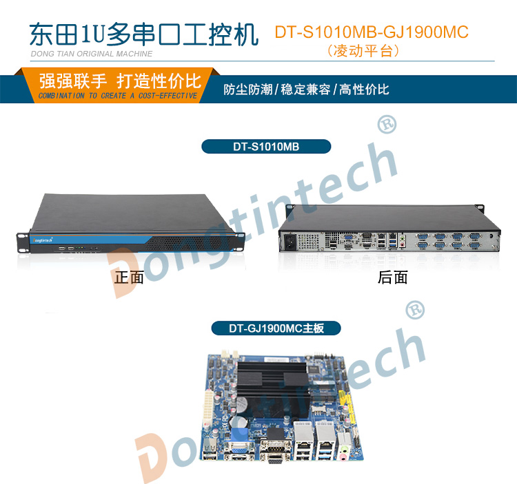 • 東田1U多串口工控機 雙網口工業服務器 DT-S1010MB-GJ1900MC