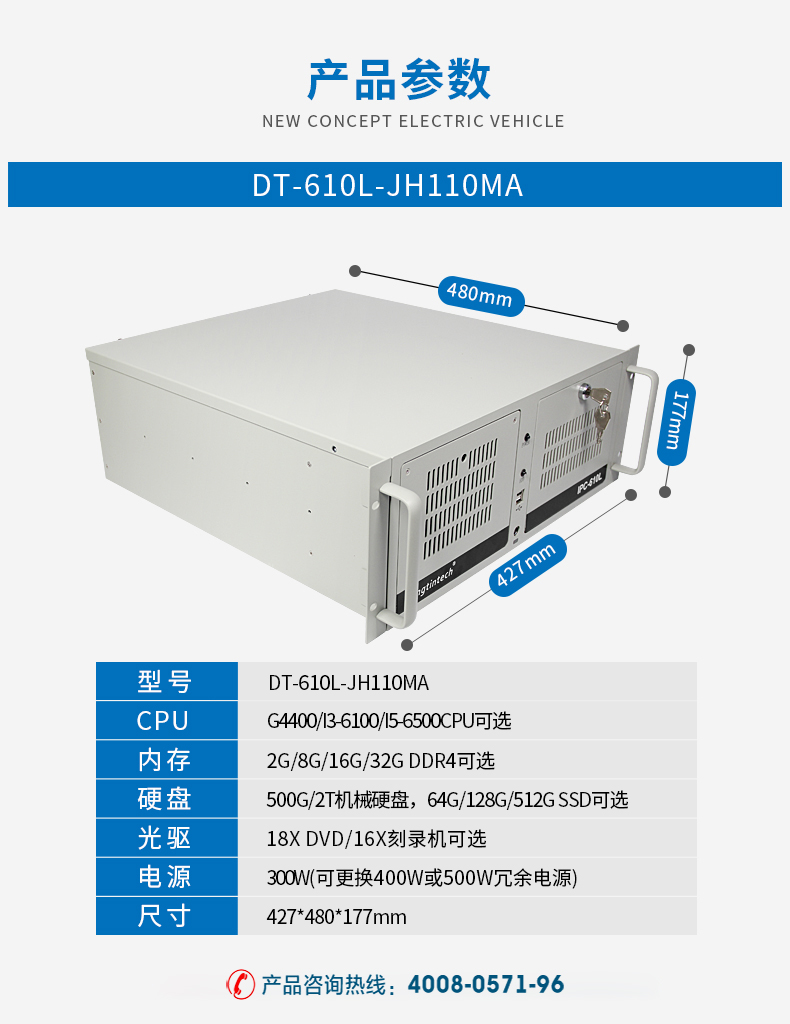 東田工控機酷睿6 7 8代4U工控機 雙網口上架式工控機 DT-610L-JH110MA