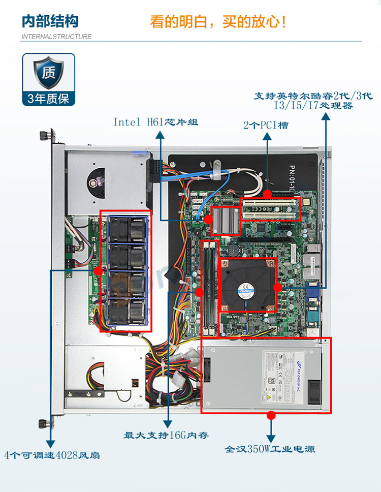 酷睿3代1U標準機架上架式工控機 支持雙硬盤raid可插卡工業電腦服務器主機 DT-14502-XH61MB