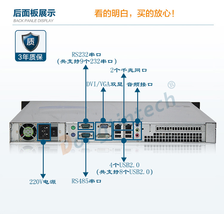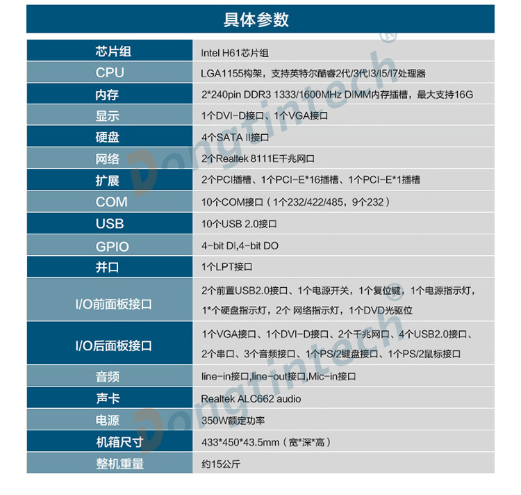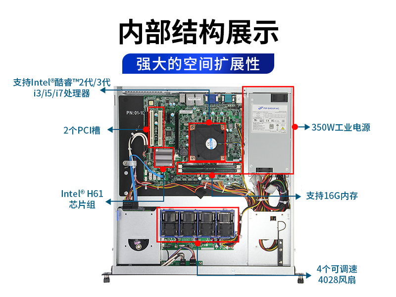 • 酷睿3代1U標準機架上架式工控機 支持雙硬盤raid可插卡工業電腦服務器主機 DT-14502-XH61MB
