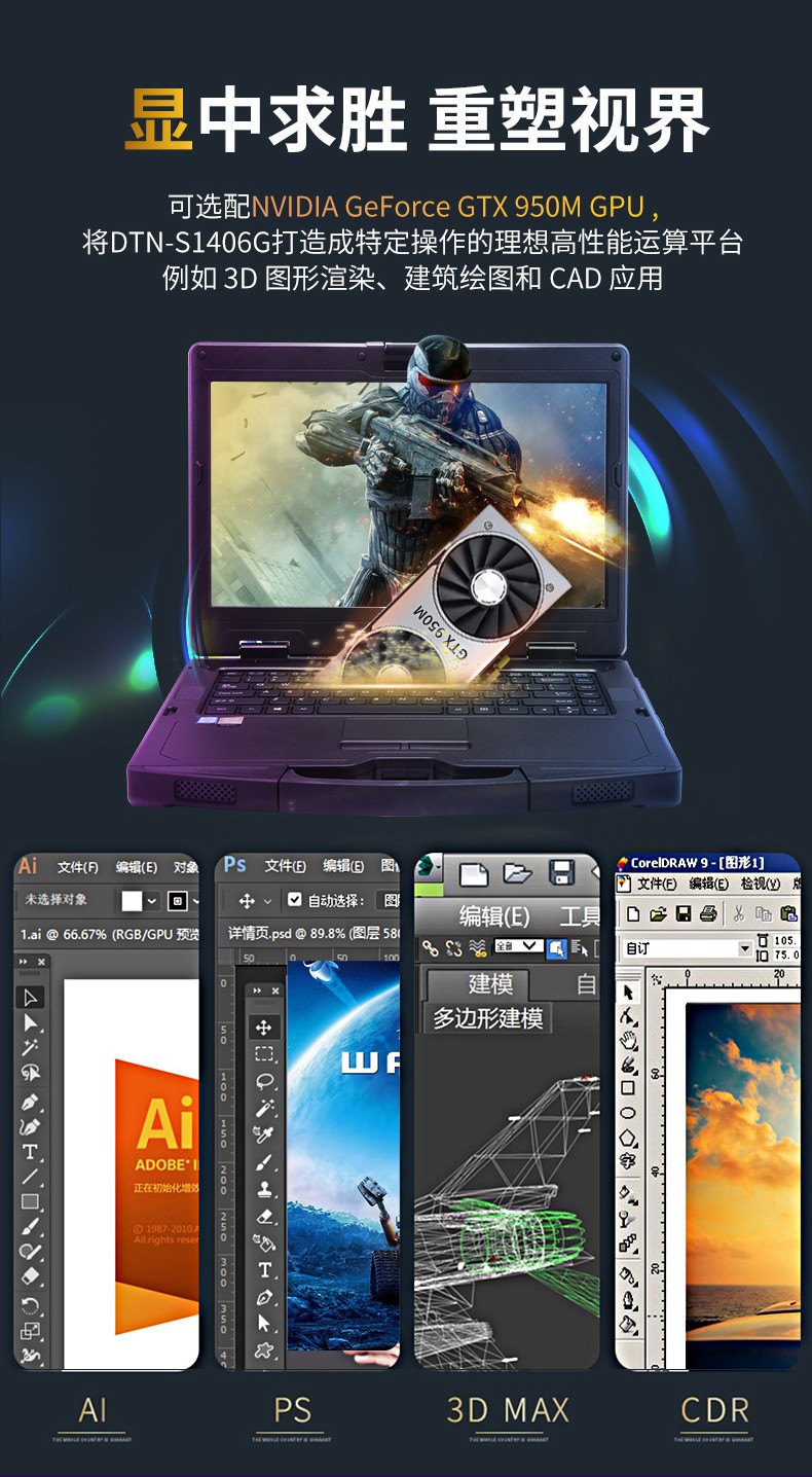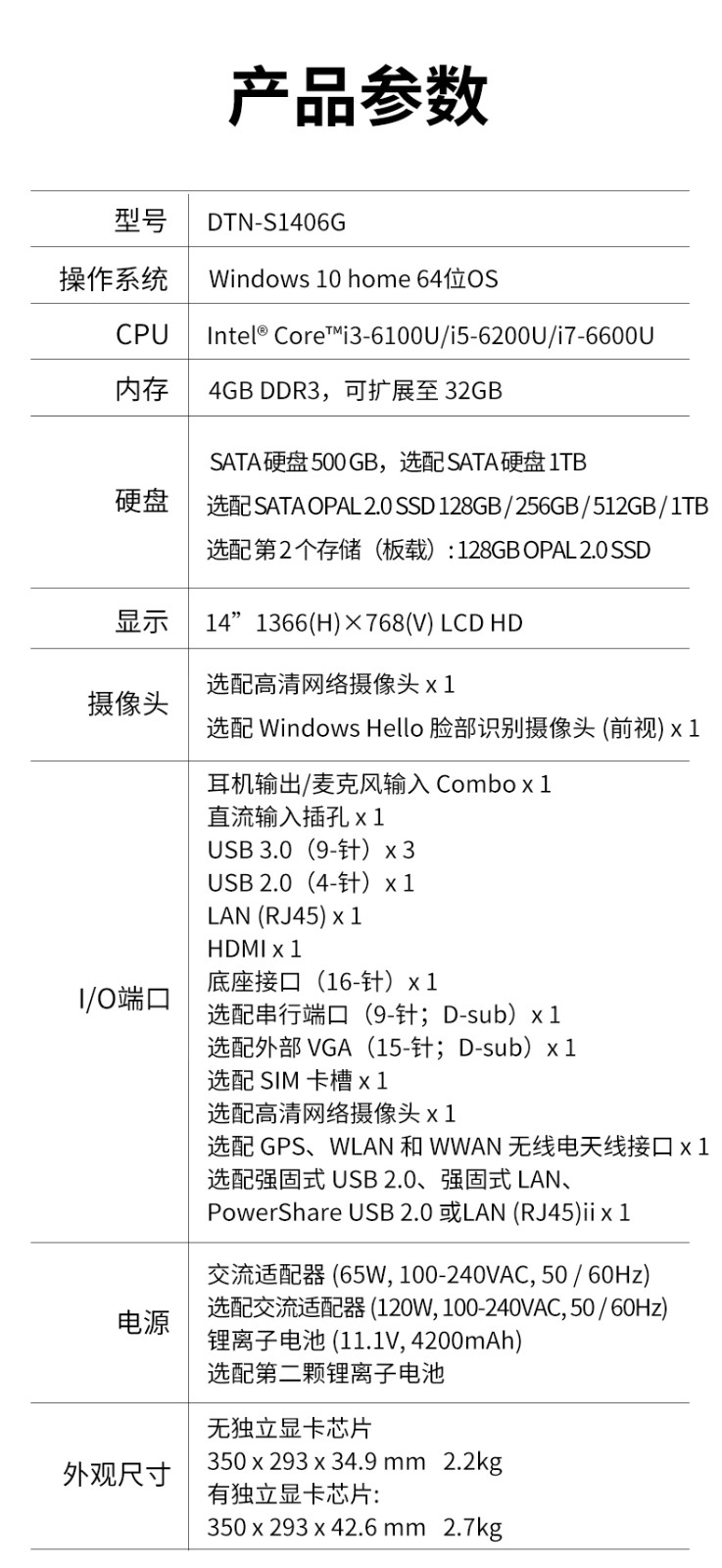 • 三防戶外便攜加固筆記本 14英寸IP65便攜筆記本電腦 DTN-S1406G