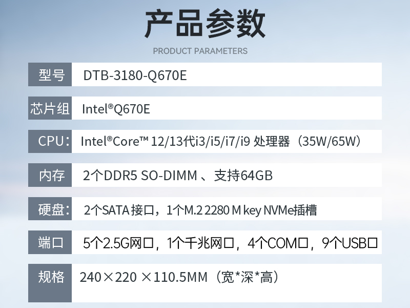 • 酷睿12代工控機-6網口9USB口工控主機|DTB-3180-Q670E