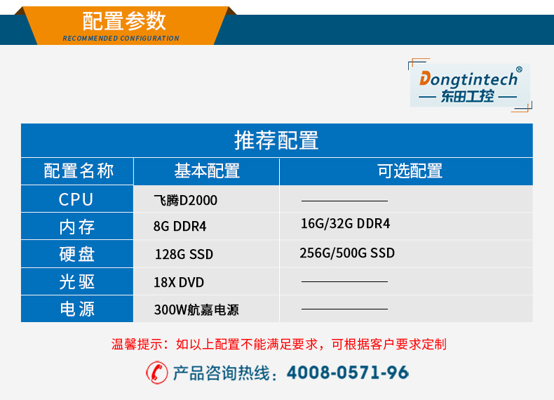 • 東田國產化4U工控機飛騰工業主機電腦DT-S4010MB-SD2000MB