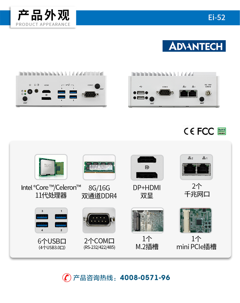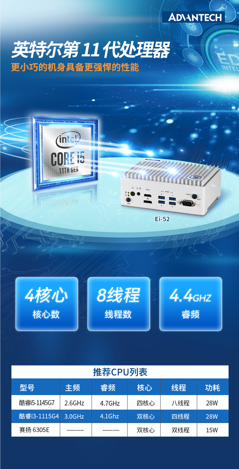 • 酷睿11代緊湊型高性能邊緣計算機 EI-52