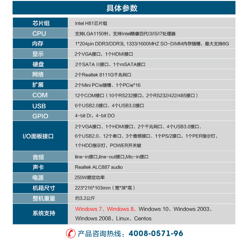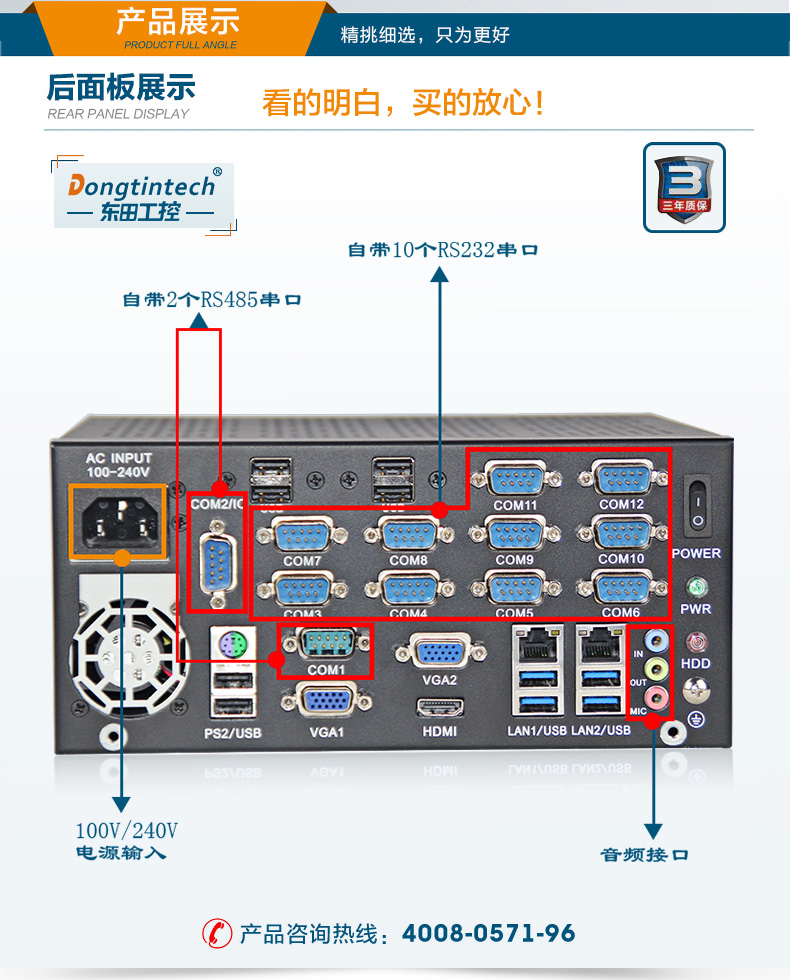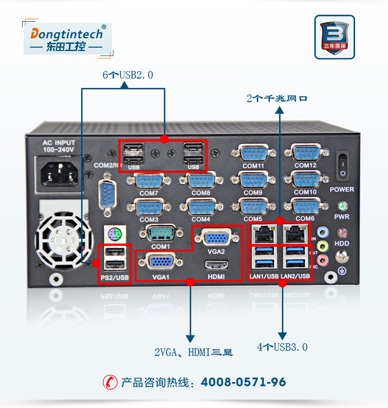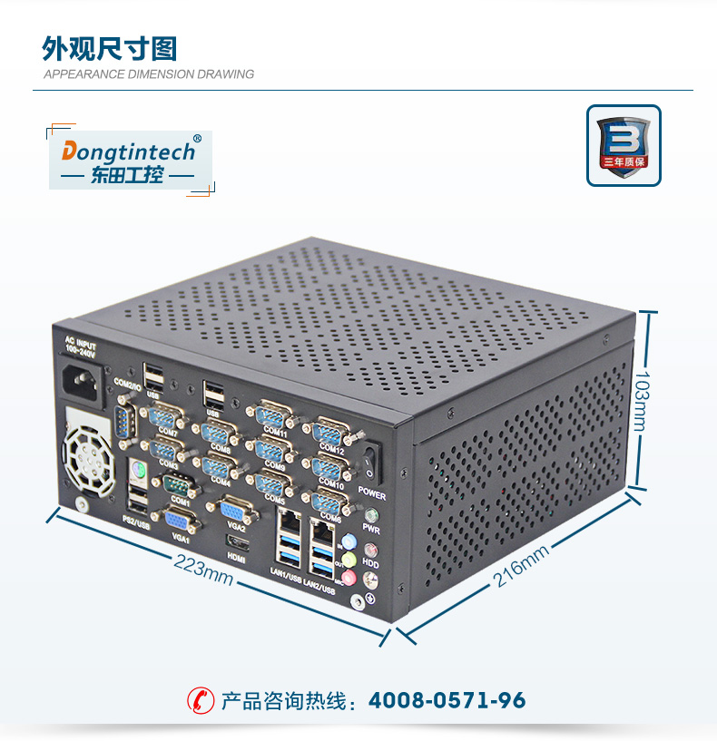 東田桌面式工控機(jī) 12串口10USB口工業(yè)服務(wù)器 DT-5304-XH81MC