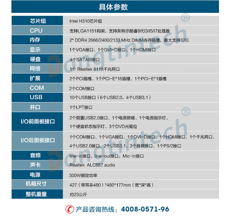 • 東田酷睿8代機器視覺工控機 4U工控機 上架式工控機 DT-610L-IH310MB
