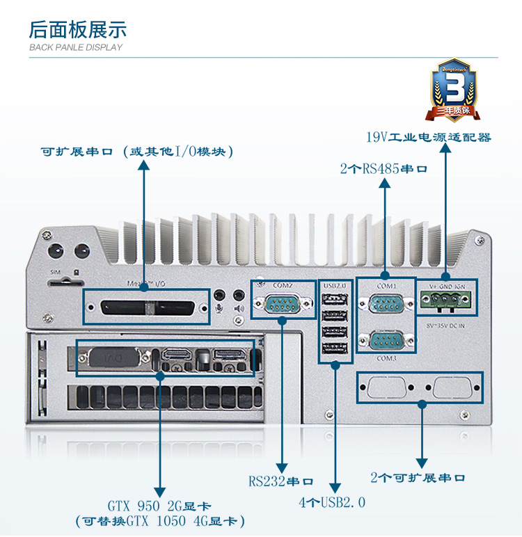 • 東田酷睿6代嵌入式無風扇工控機三顯支持服務器GPU工業電腦 DTB-3016GTX-Q170