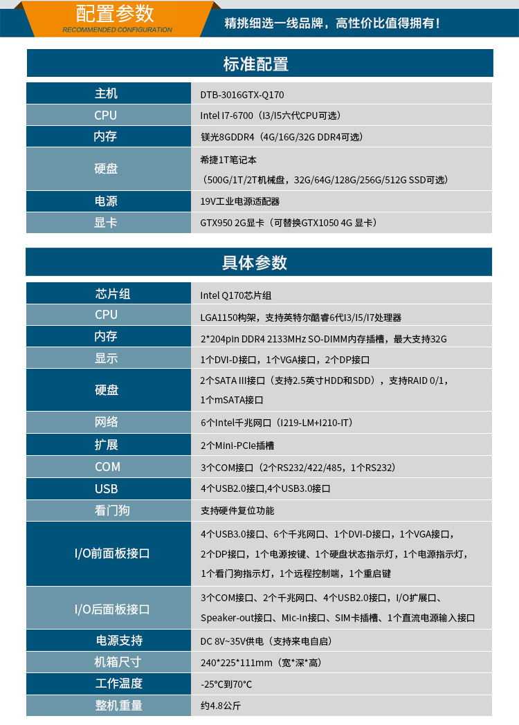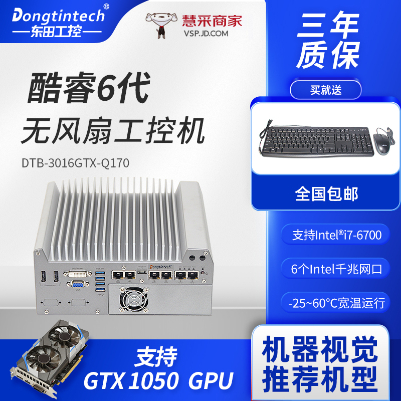東田酷睿6代嵌入式無風扇工控機三顯支持服務器GPU工業電腦 DTB-3016GTX-Q170